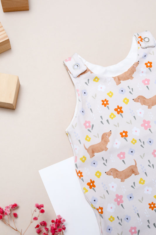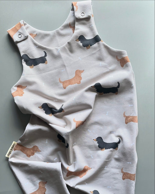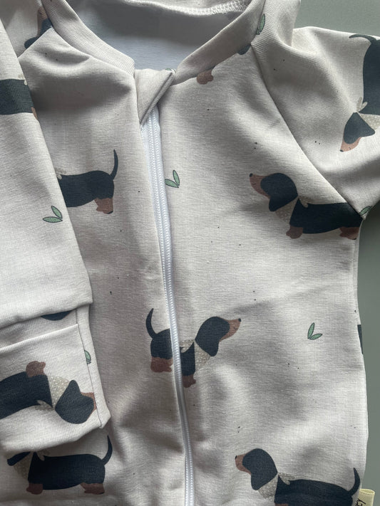 Erik Black and Tan sausage dog oatmeal zippy baby-grow