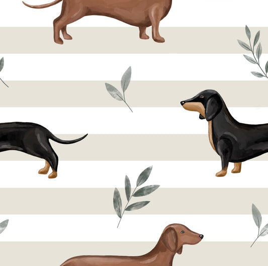Neutral stripe sausage dog zippy baby-grow